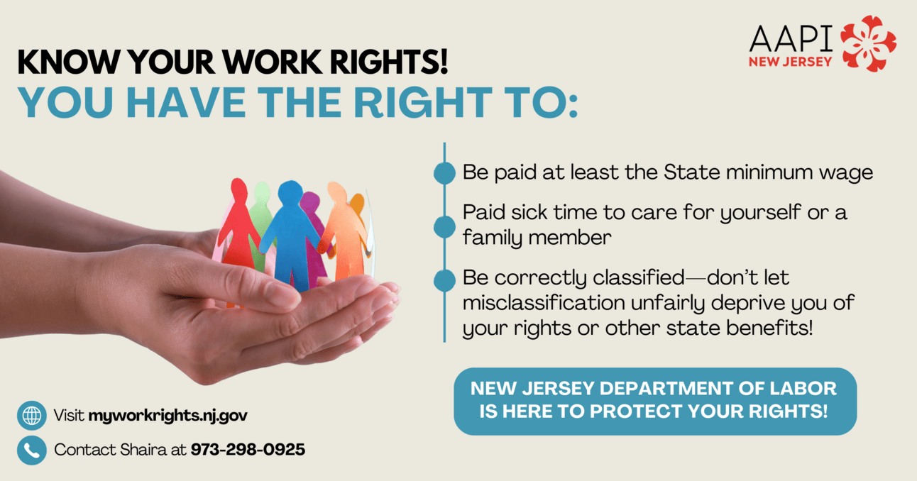 You have the right to fair pay and paid sick time. NJDOL offers free services to all NJ workers. NJDOL investigates violations and retaliation from employers. Learn more.