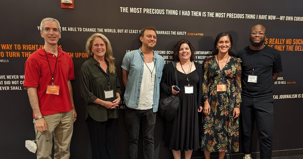Ambreen Ali, second from right, with entrepreneurial journalists at the Newmark Graduate School of Journalism.