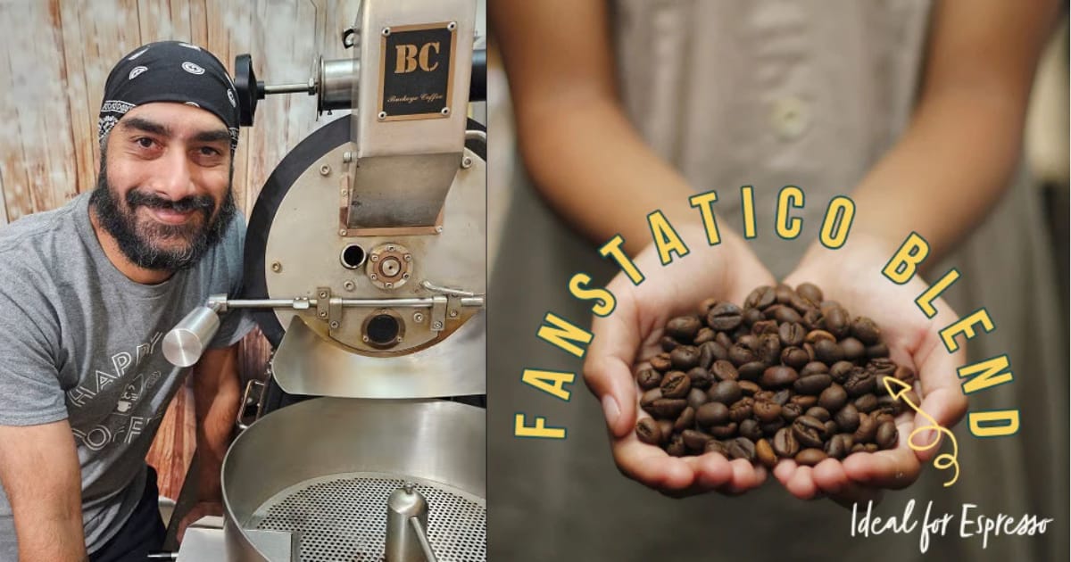 Owner Sukhi Bedi with his coffee roaster. Images from Happy Cat Coffee.