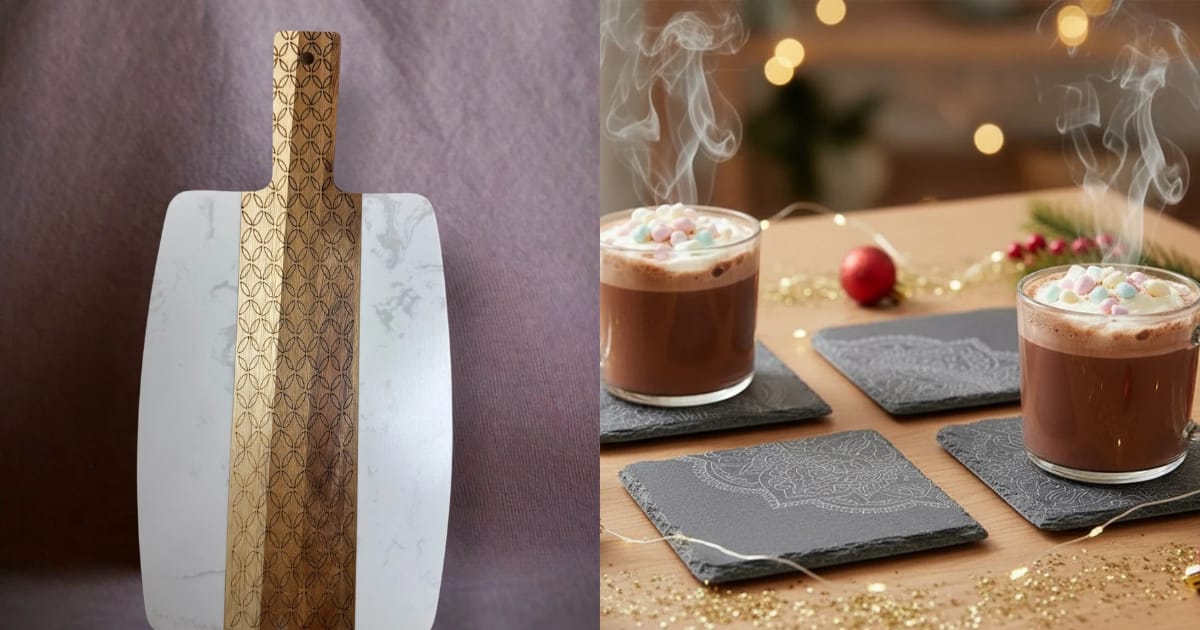 Seamlessly blending South Asian aesthetics with modern design trends, Tinted Heritage pieces are crafted in a New Jersey studio. Offerings include personalized, laser-engraved items like marble and wood serving boards, coasters, and ornaments, featuring designs inspired by elements like Warli art, lotus flowers, and Bagru prints—making them ideal for housewarming gifts, festive celebrations like Diwali, and adding a meaningful, artistic touch of cultural pride to any modern home.
