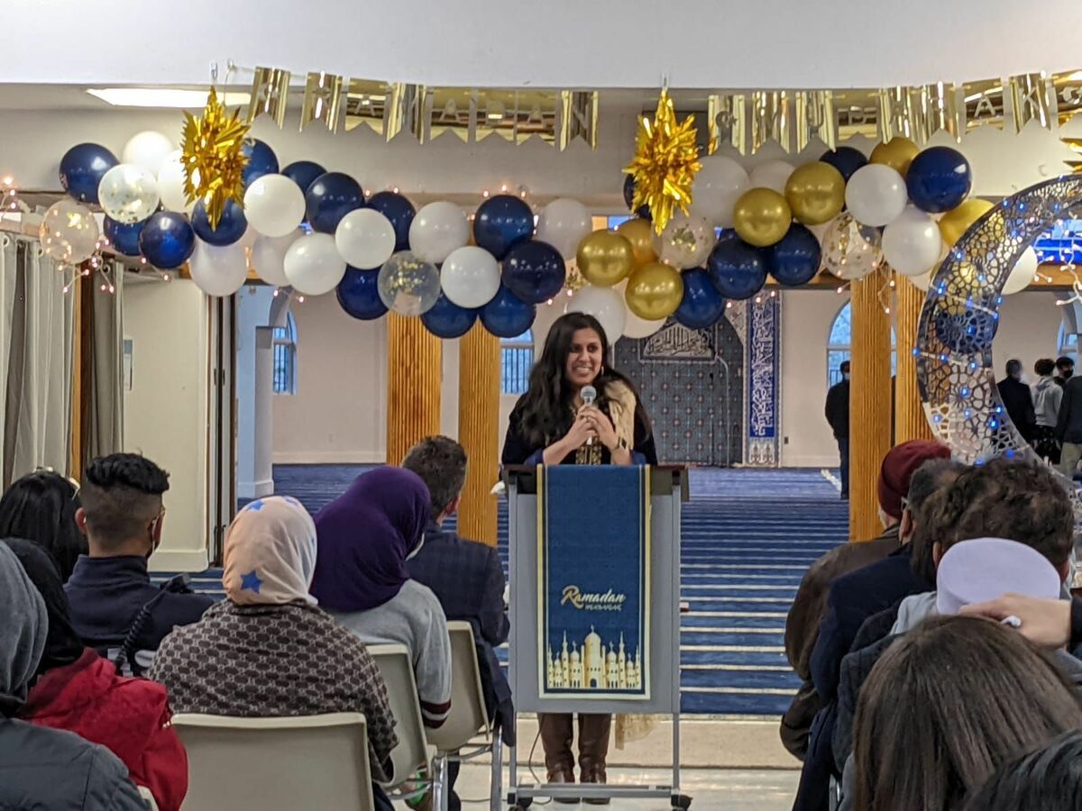 Assemblywoman Jaffer speaks at an Eid celebration in Central Jersey. Photo courtesy of Sadaf Jaffer.
